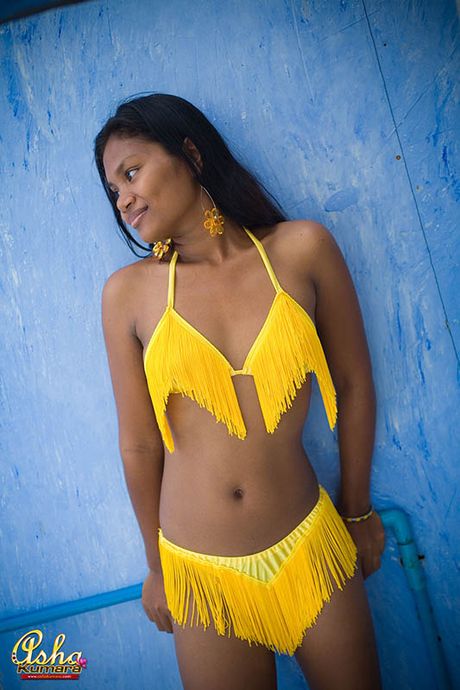 Asha Kumara: Asha Kumara shows chocolate nipples and ass in a bikini
