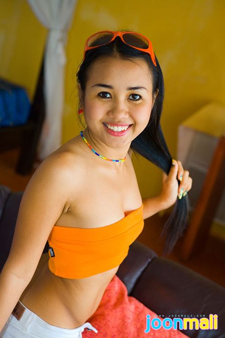 Joon Mali: Asian cutie slides down orange sunglasses white booty shorts