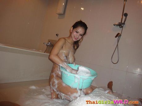 Thai Girls Wild: Big tit Thai babe Janee takes a sudsy bath and fucks
