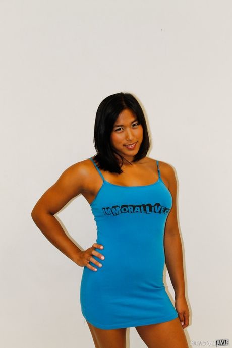 Immoral Live: Delightful asian dark hair cutie Mai Li in nice skirt showing big titties and ass