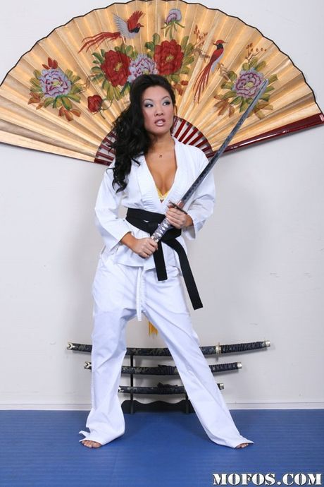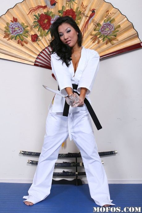 Mofos World Wide: Excellent american babe Asa Akira in uniform exhibits big titties and masturbates
