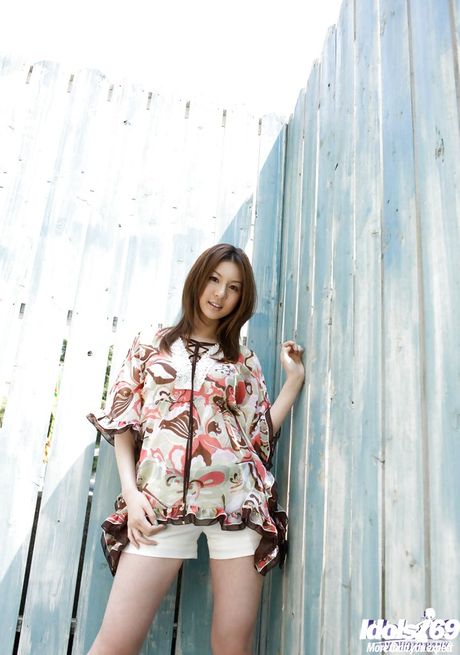 Idols 69: Hot japanese babe Tatsumi Yui in shorts exposes her ass outdoor