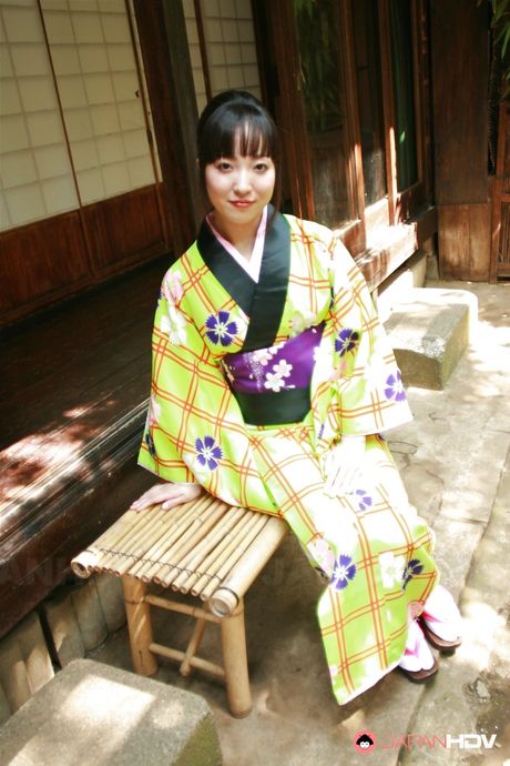 Japan HDV: Japanese girls in yellow kimono shown her hairy twat