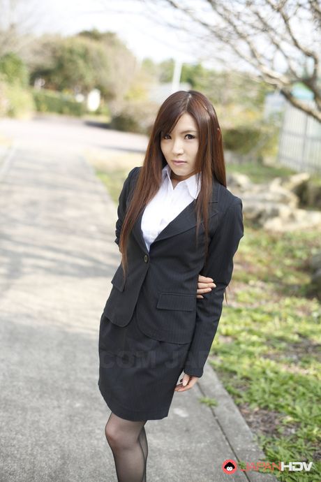 Japan HDV: Naughty Hitomi Tsukishiro in office outfit poses so sexy outdoors.