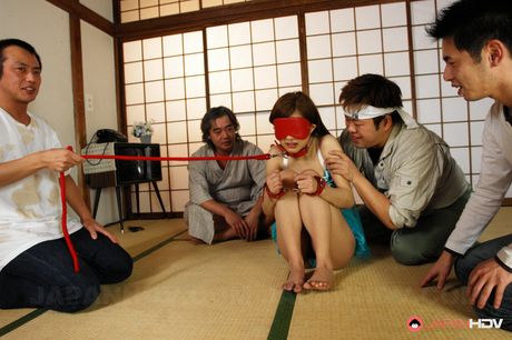 Japan HDV: Pale redhead babe Yayoi Yoshino gets tied up and rammed in a group sex