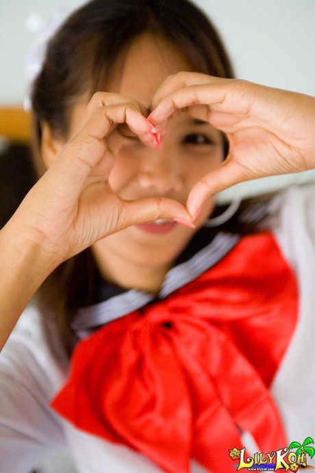 Lily Koh: Petite Lily Koh in Japanese schoolgirl uniform