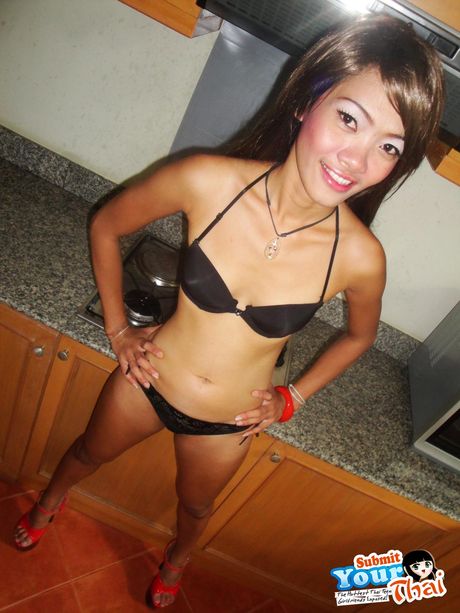 Submit Your Thai: Petite Thai girlfriend striping and showing her pussy