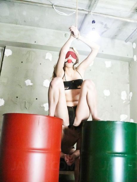 AV 69: Rika Aina Asian with mask on eyes has cunt fondled through panty