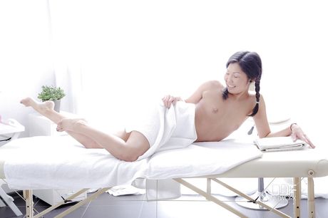 Euro Teen Erotica: Slim asian brunette teen Veiki in fancy shorts exposing small tits and hot ass