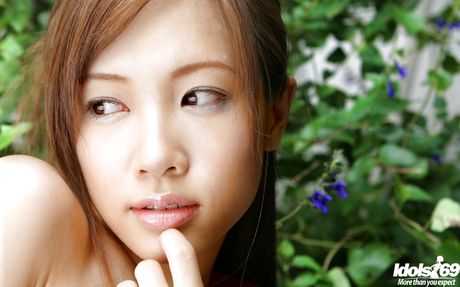 Idols 69: Svelte japanese youthful Reika Shina exposes small tits and spreads her legs outdoor