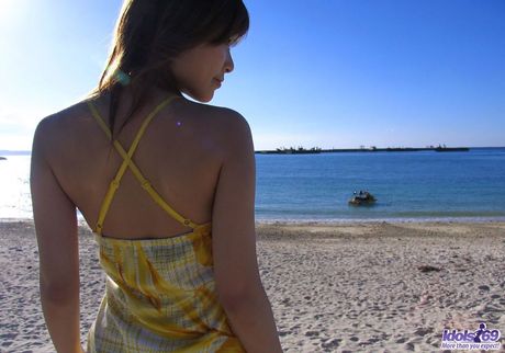 Japan HDV: Sweet short haired Japanese chick does bikini photo shoot on the beach