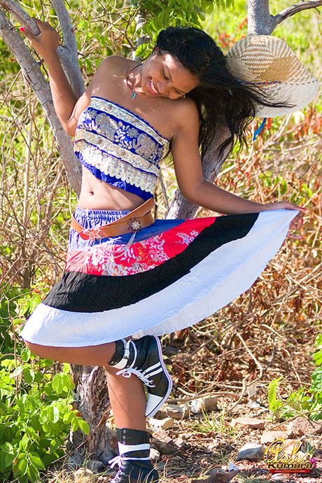 Asha Kumara: Teen Asha lifts her India skirt and exposes brown nipples