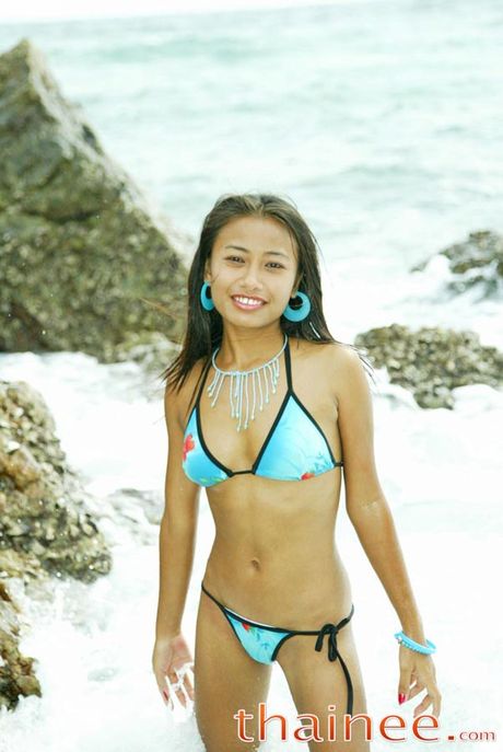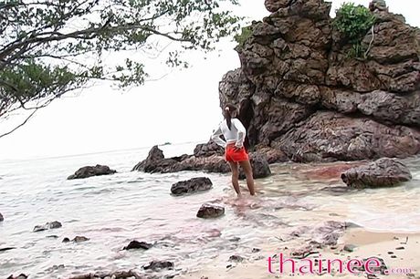 Thainee: Thai teen girl splashes around in the thailand sea